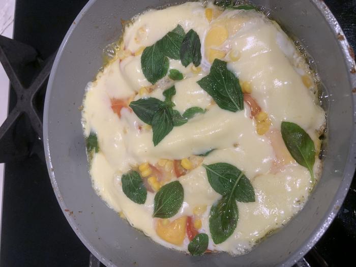 - fechar a figideira para cozinhar os ovos (também da para fritar os ovos antes, reservar, e colocar sobre tudo)
